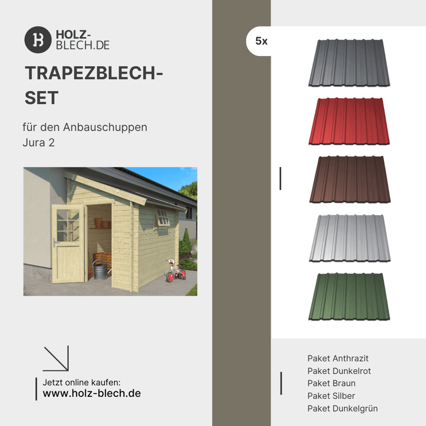 Zusammenfassung - Trapezblech Set für Anbauschuppen Jura 2