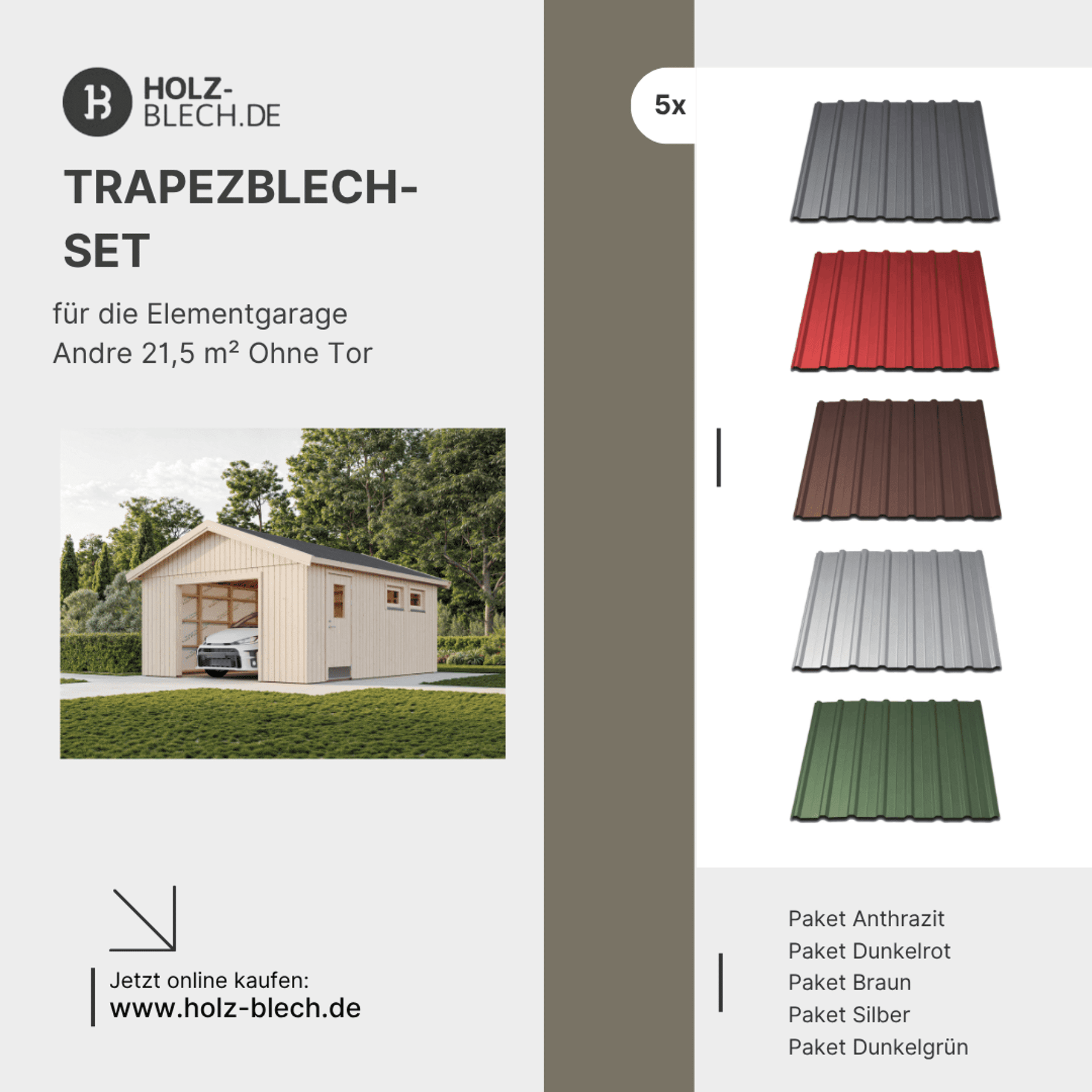 Zusammenfassung - Trapezblech Set für Elementgarage Andre 21,5 m² ohne Tor