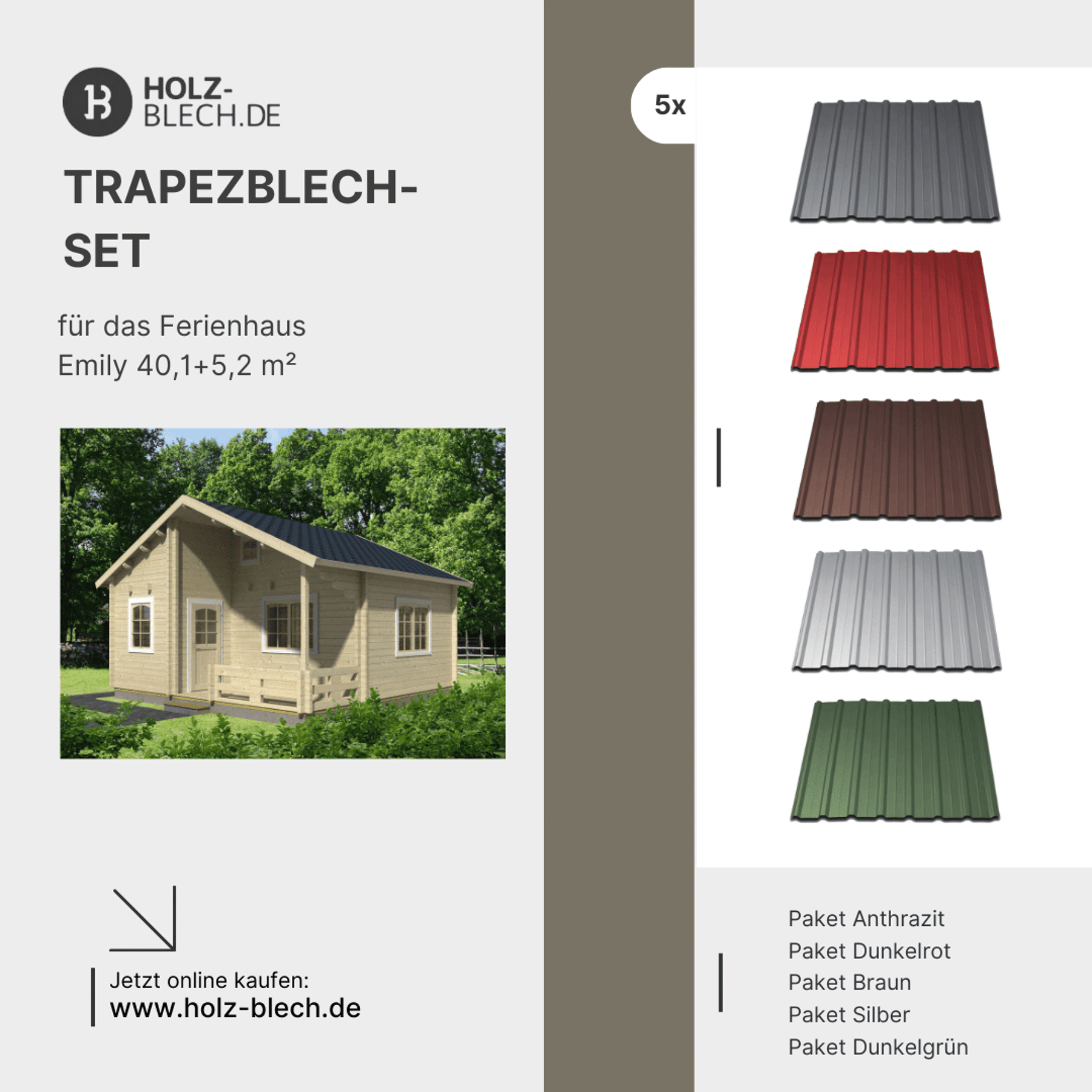 Zusammenfassung - Trapezblech Set für Ferienhaus Emily 40,1+5,2 m²