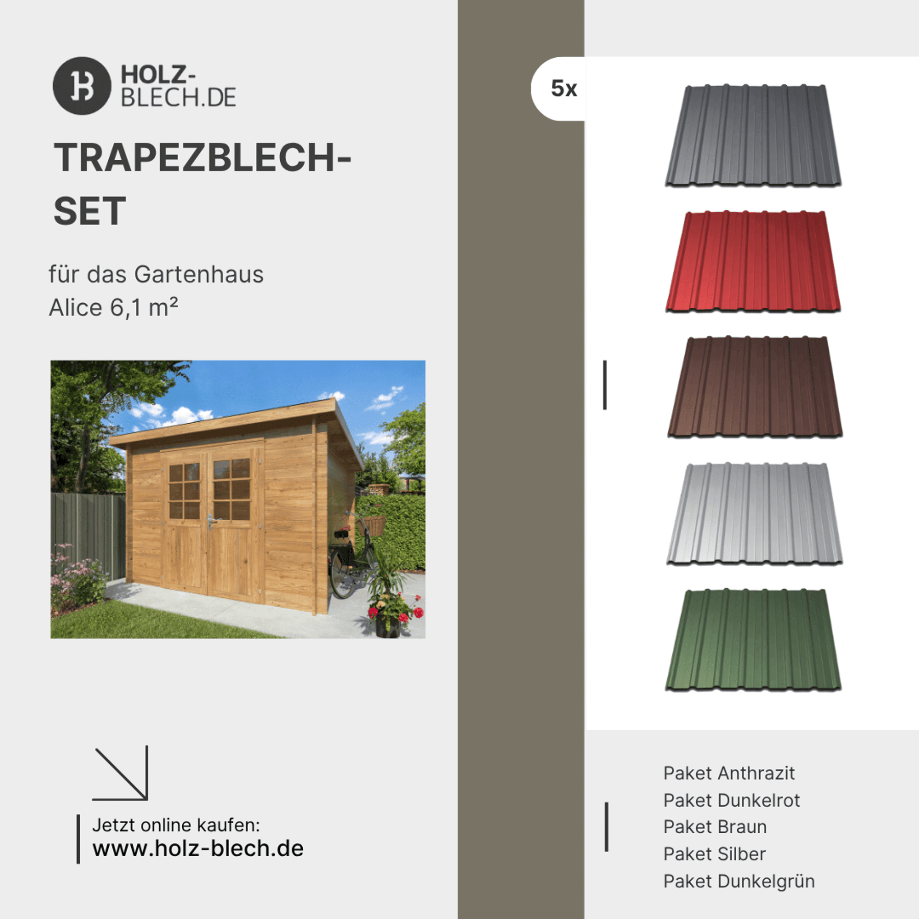 Trapezblech Set für Gartenhaus Alice 6,1 m²