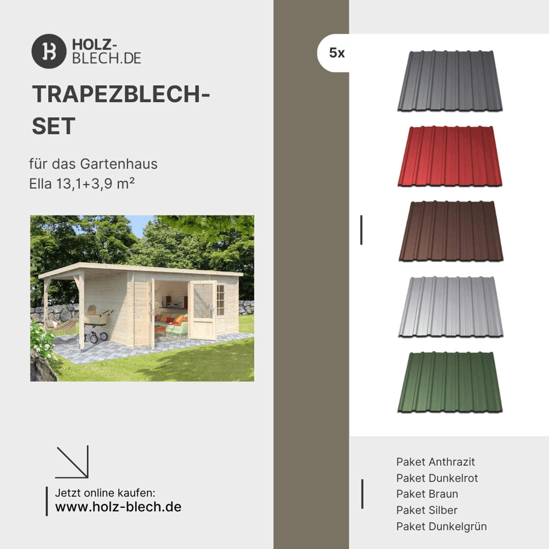 Zusammenfassung - Trapezblech Set für Gartenhaus Ella 13,1+3,9 m²