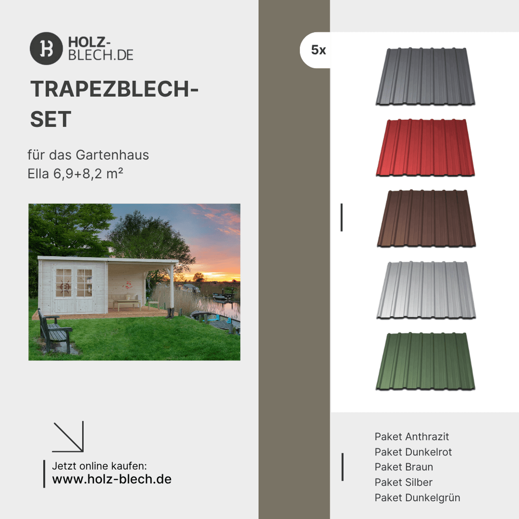 Zusammenfassung - Trapezblech Set für Gartenhaus Ella 6,9+8,2 m²