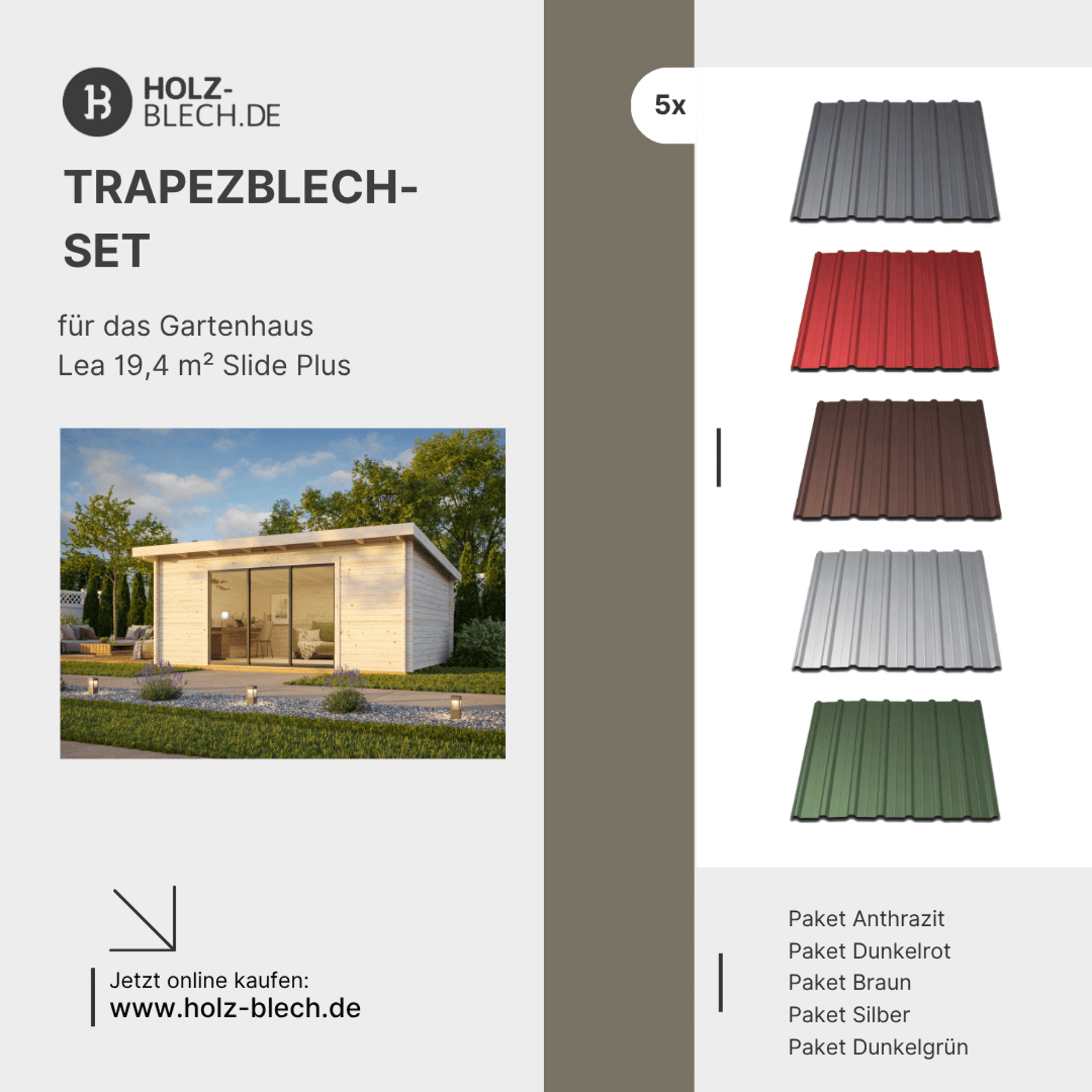 Zusammenfassung - Trapezblech Set für Gartenhaus Lea 19,4 m² Slide Plus