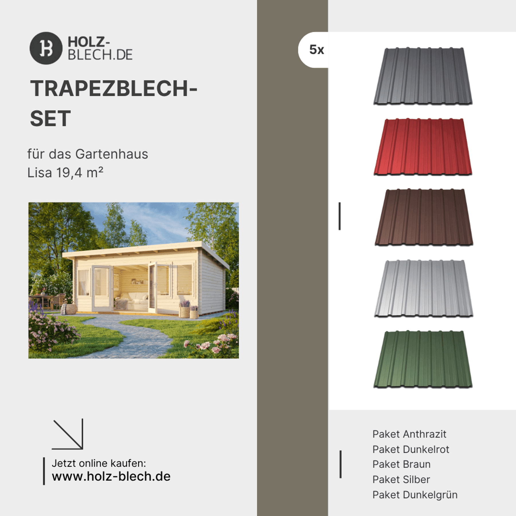 Zusammenfassung - Trapezblech Set für Gartenhaus Lisa 19,4 m²