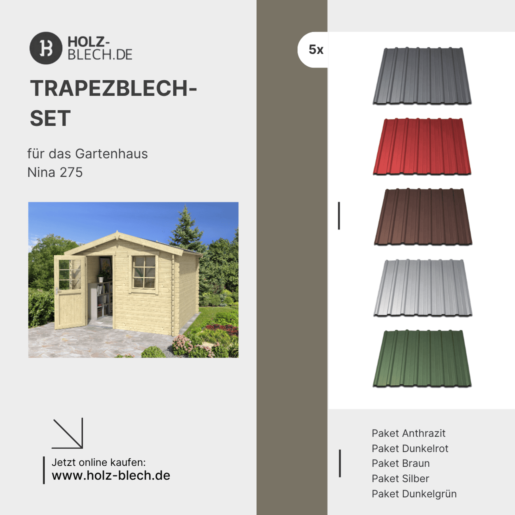 Trapezblech Set für Gartenhaus Nina 275