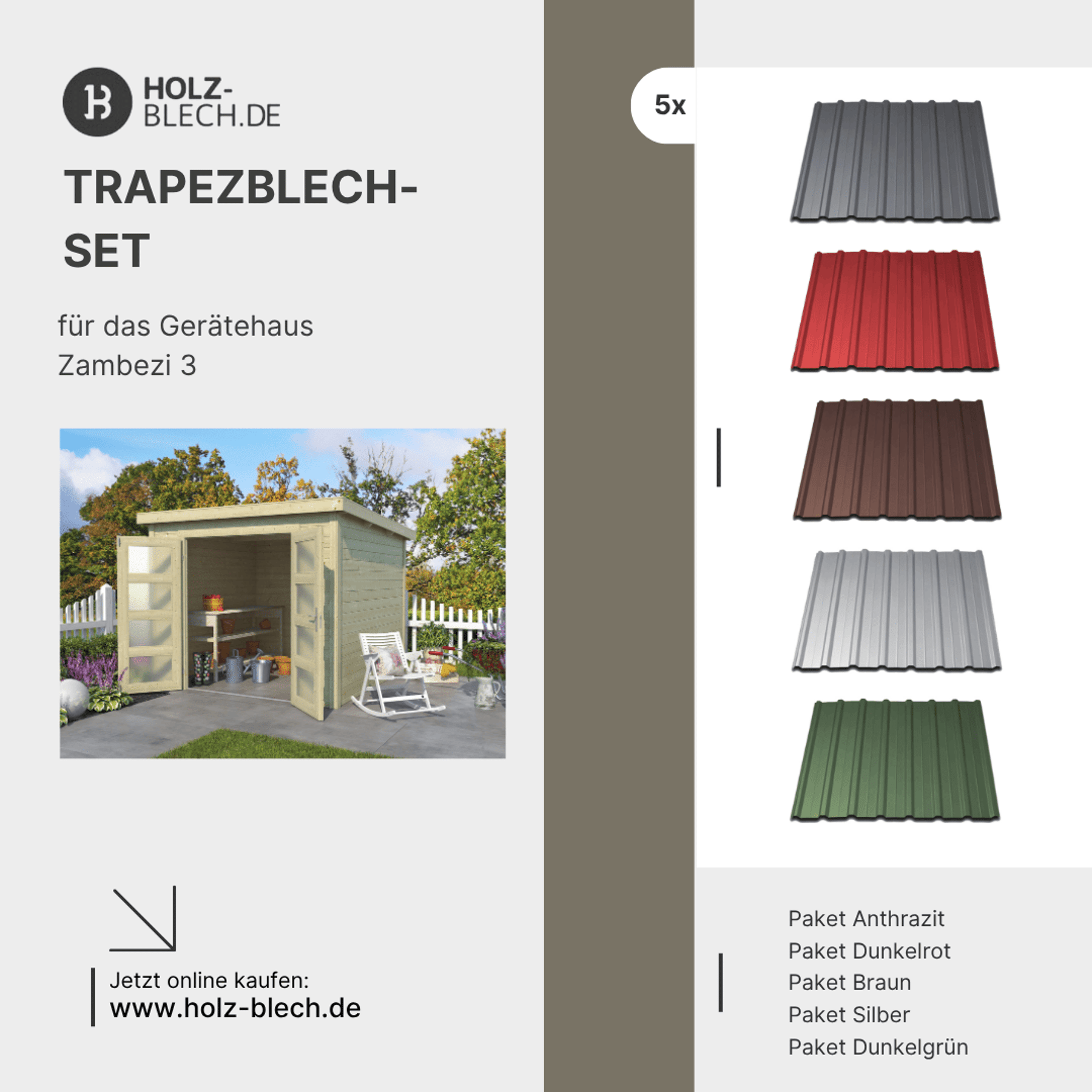Zusammenfassung - Trapezblech Set für Gerätehaus Zambezi 3
