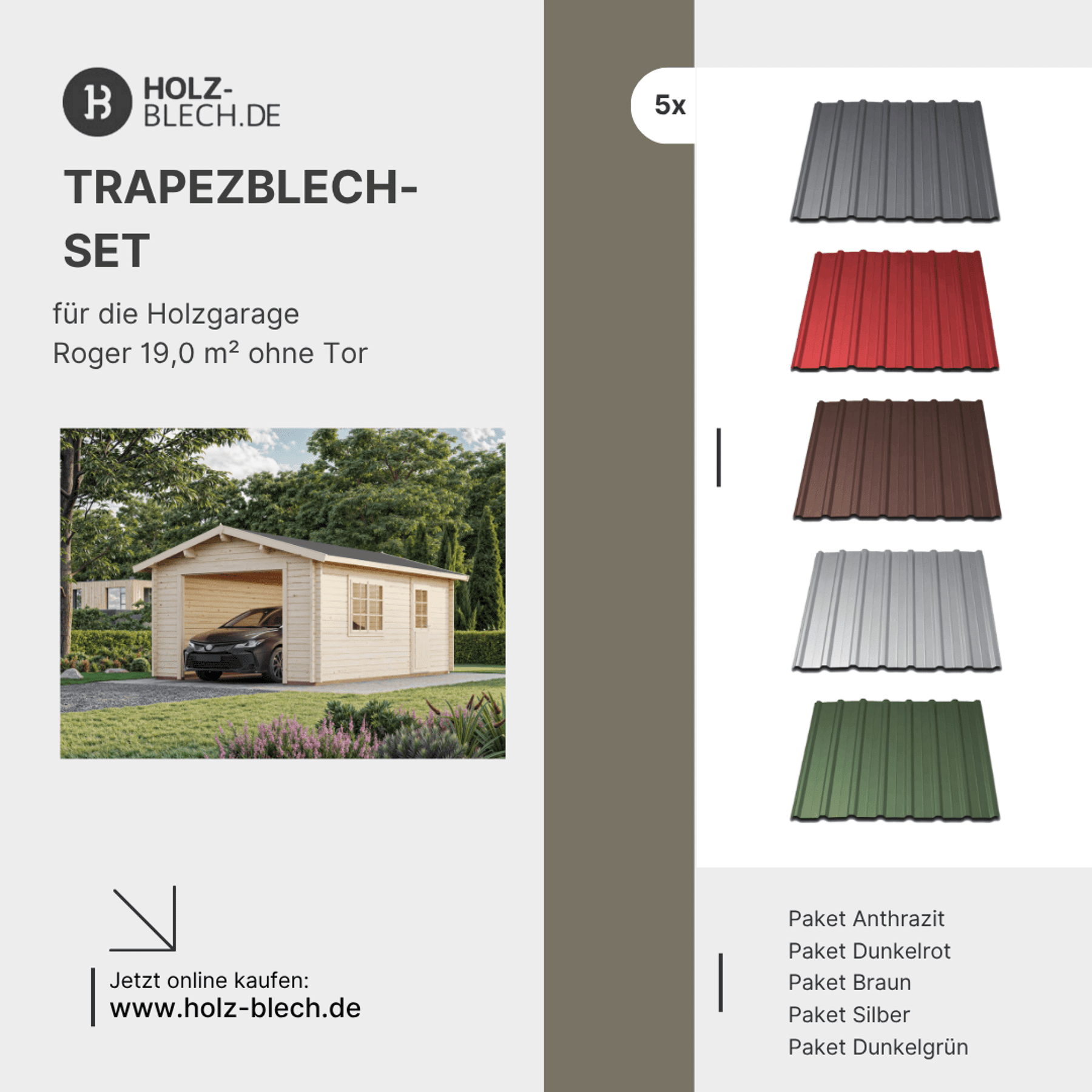 Trapezblech Set für Holzgarage Roger 19,0 m² ohne Tor