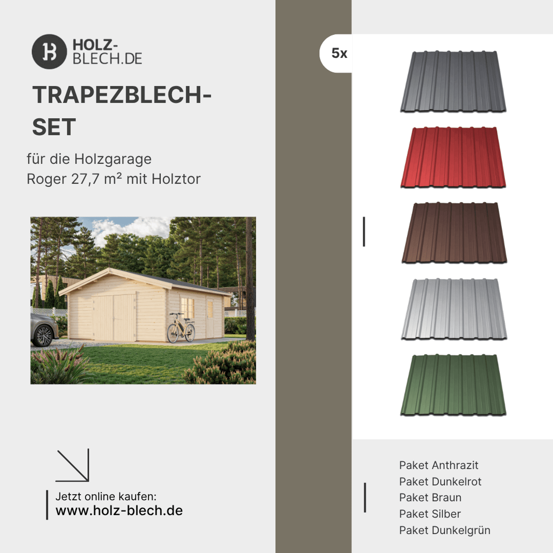 Trapezblech Set für Holzgarage Roger 27,7 m² mit Holztor
