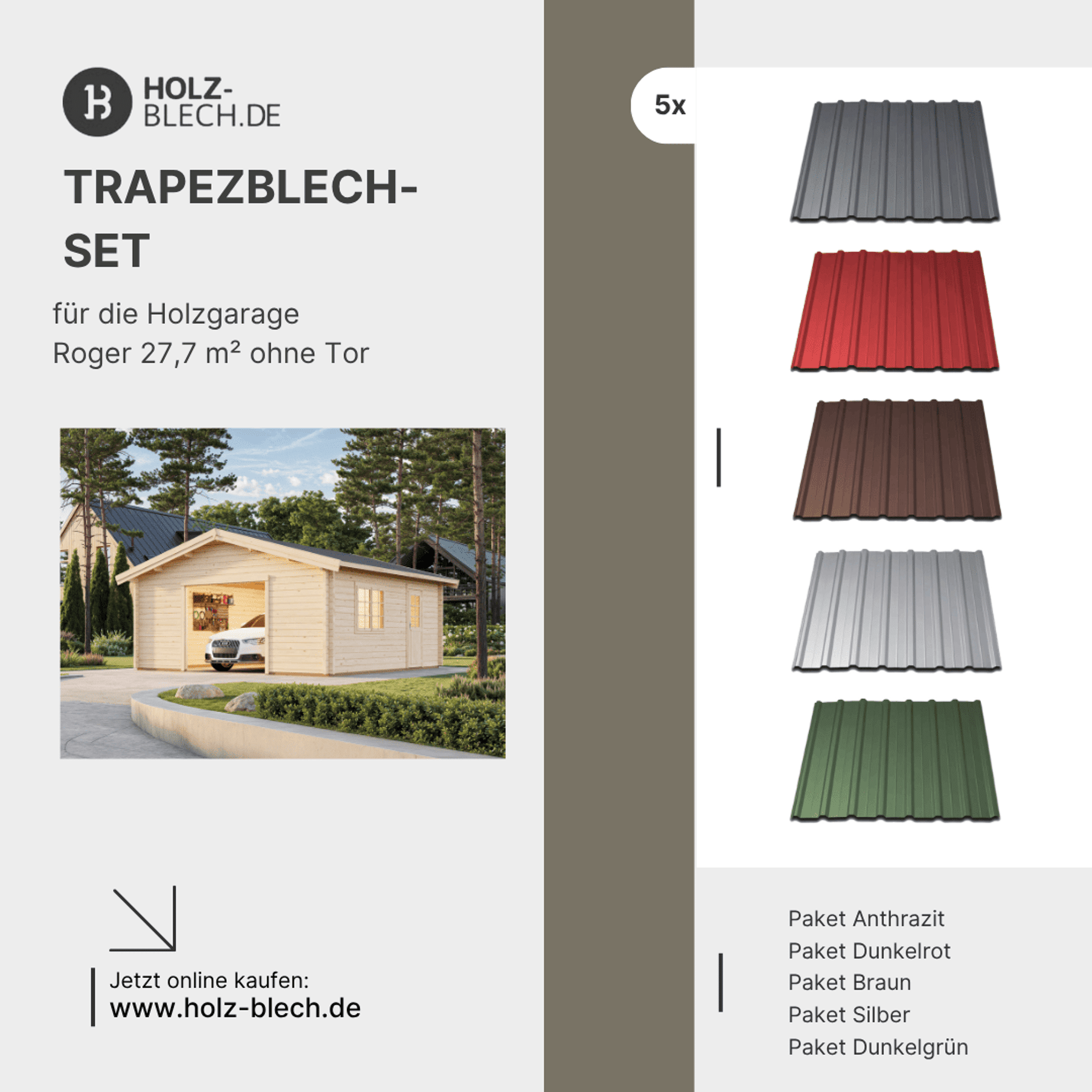 Trapezblech Set für Holzgarage Roger 27,7 m² ohne Tor