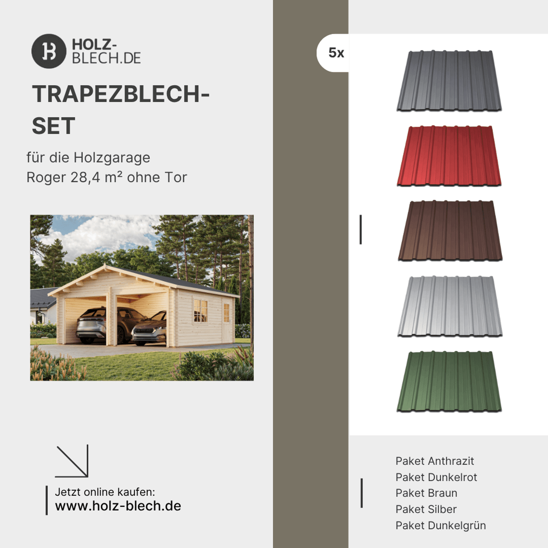 Trapezblech Set für Holzgarage Roger 28,4 m² ohne Tor
