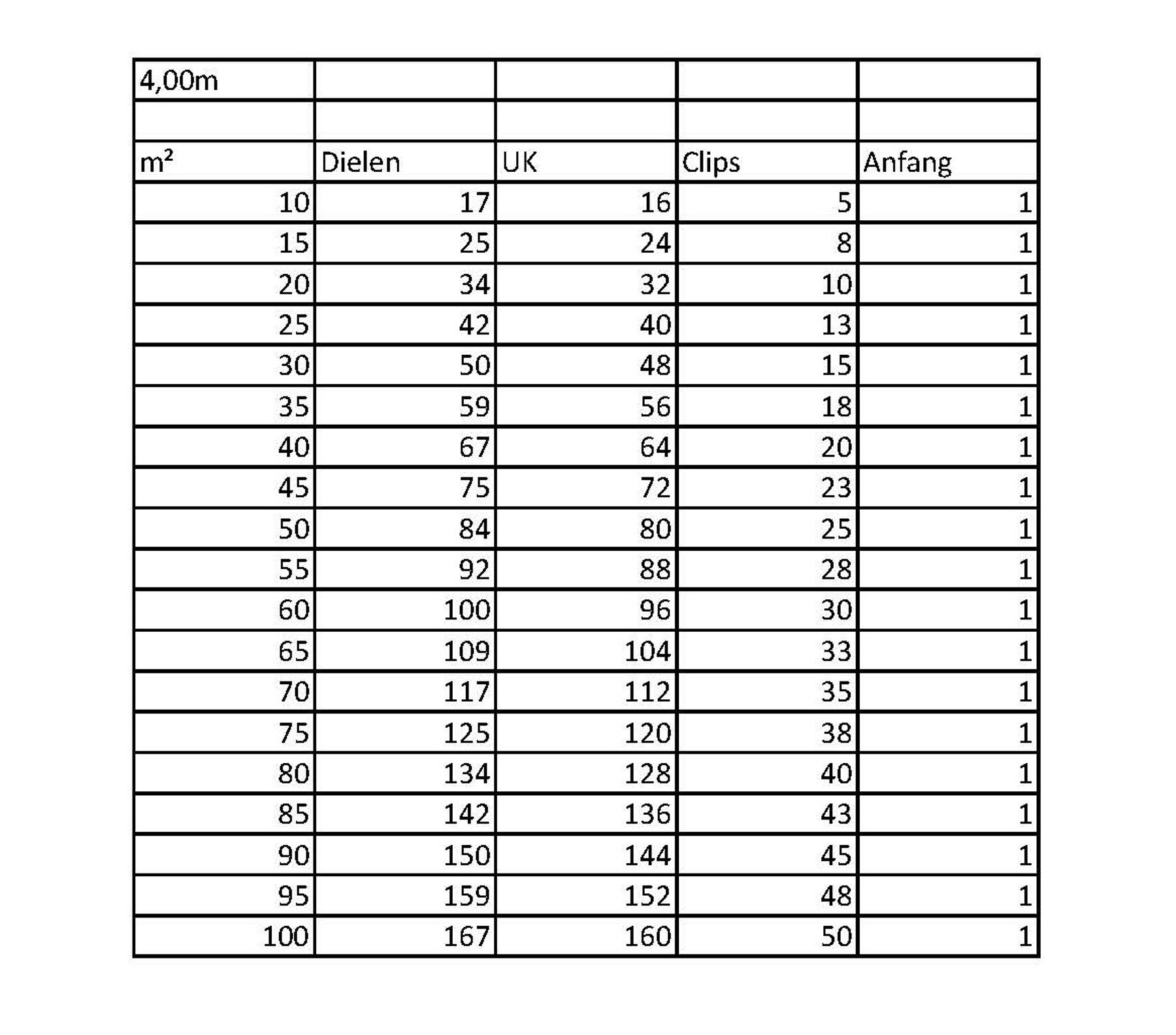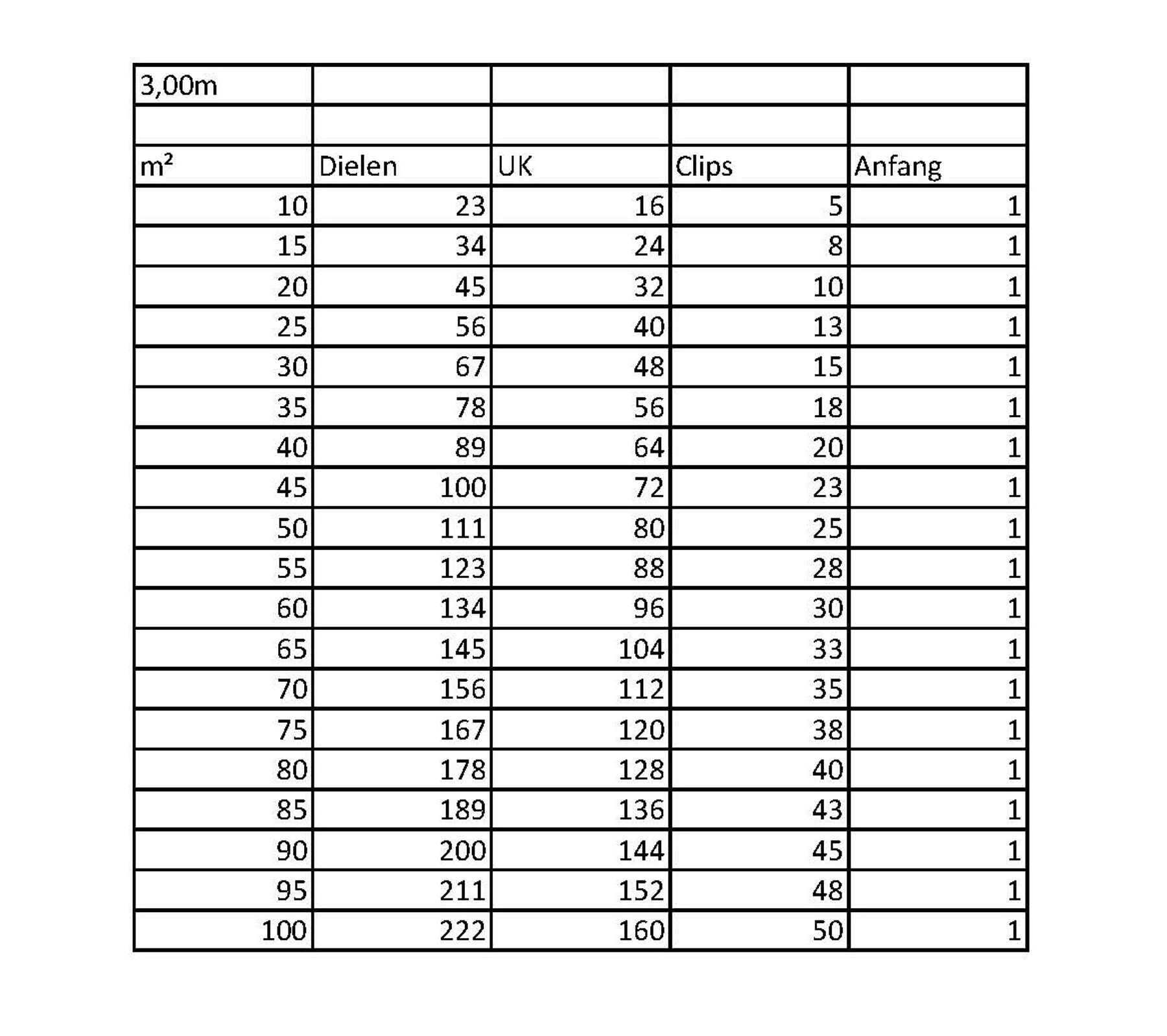- Fläche: 0,435/ 0,58/ 0,725 m² pro Diele