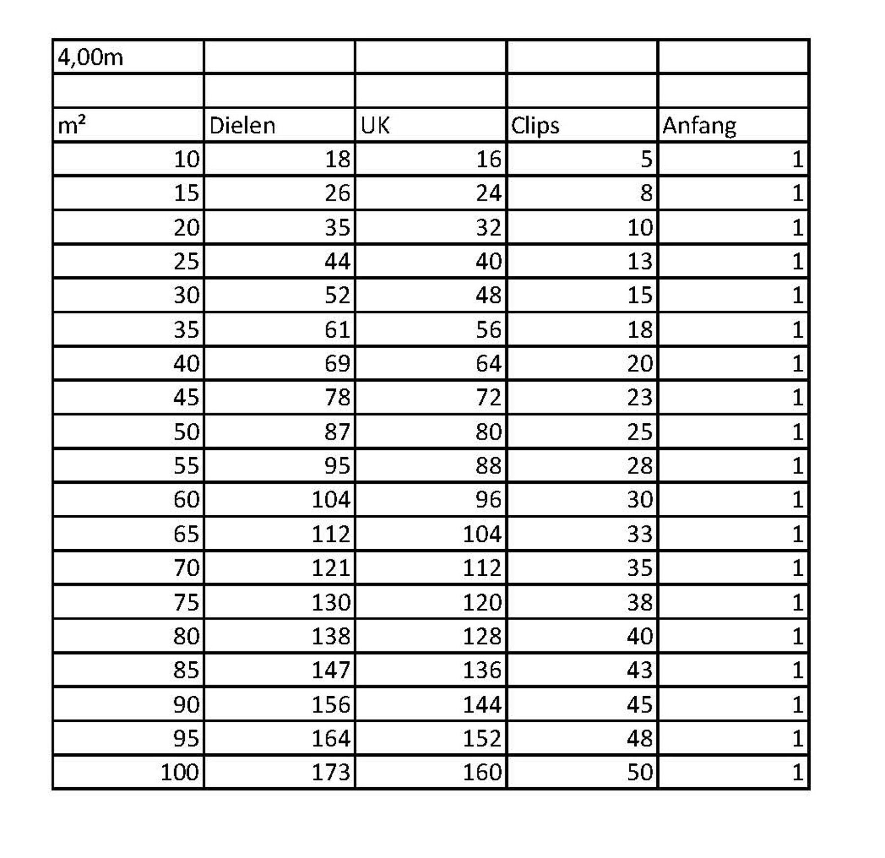 - Fläche: 0,56/ 0,70 m² pro Diele